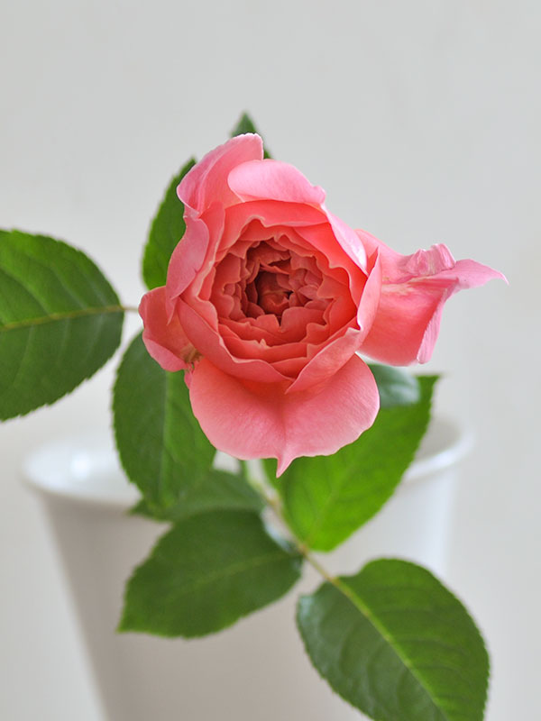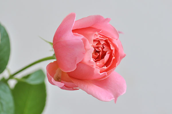夕焼け茜空の刻一刻と変わる美しい空の色を表現から命名した、芍薬のような咲き方をするばら「茜」。